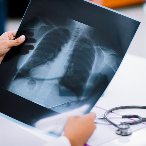 肺や心臓の様子をX線で撮影し、肺炎や肺がん等の目に見えない病気が潜んでいないかを調べる検査です。短時間で終わり、痛みもありません。